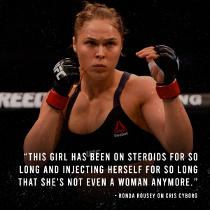 BREAKING NEWS - Jacked up woman accused of steroid use for years tests positive for steroid use... Cristiane Justino Venâncio better known as Cris Cyborg popped for Stanozolol in 2012 while fighting for Strikeforce - a promotion which the UFC would soon after buyout and dissolve. Cyborg's excuse for using the anabolic steroid was that she was having trouble cutting weight for a fight with Hiroko Yamanaka, and that it must have came from a dietary supplement that aided the process. However, the California State Athletic Commission found that the steroid would never be found in any weight loss supplement period. Thus, Cyborg's ruthless 16-second knockout over Yamanaka was overturned as a no contest, she was handed a one year ban from the sport, and also handed a $2500 fine for her actions. Despite not testing positive since, many still hold a stereotype over Cyborg for her past conviction, including superstar Ronda Rousey who dubbed her as 'Not even a woman anymore',